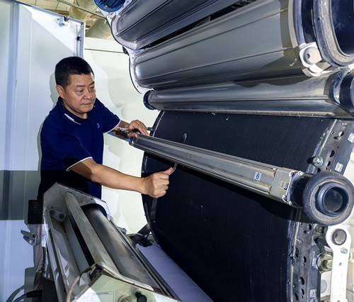 周末的一分廠梳棉工序生產(chǎn)現(xiàn)場,有著38年從業(yè)經(jīng)驗(yàn)的老技師宗朋朋,正帶領(lǐng)保全小組成員加班攻關(guān),硬生生地將30臺(tái)攻關(guān)機(jī)臺(tái)生條棉網(wǎng)結(jié)雜含量控制在50粒/克以內(nèi),為百日攻關(guān)目標(biāo)筑牢基礎(chǔ)。