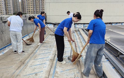 近日,為進一步筑牢防汛安全防線,支部書記發揮頭雁效應,組織全體黨員干部開展“防汛保安全”主題黨日活動。活動現場,黨員干部手持掃把、鐵鍬等工具,對公司庫房樓頂展開全面排查整治。針對往年因垃圾堵塞導致樓頂積水、庫房滲漏的18個落水口及300余平方米的屋面進行深度清掃,全面疏通排水管道,將樓頂堆積的雜物清理一空。 通過此次專項整治,有效消除了因屋頂積水引發滲漏的安全隱患,為原料存儲及產成品安全提供了堅實保障,切實將黨組織的戰斗堡壘作用發揮在安全生產第一線。